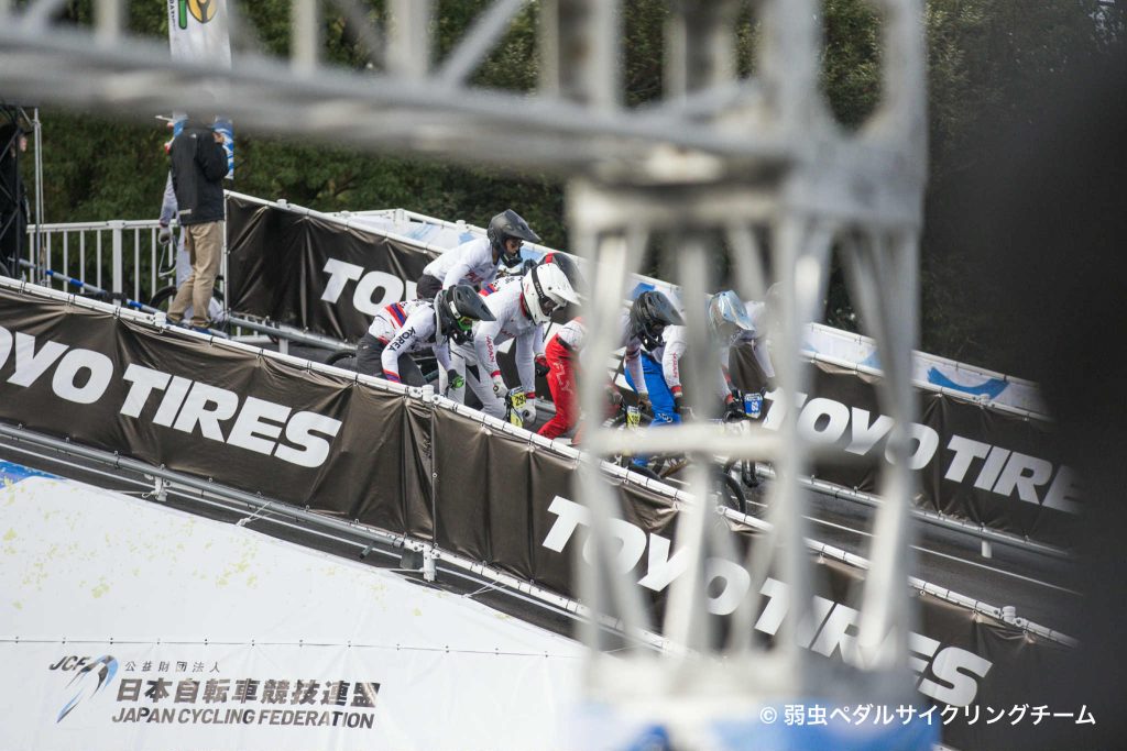 ゲートでペダルが外れてしまい出遅れて1つ目も2つ目も飛ぶことが出来なかった。第1バームでイン側が空いてたためイン側に入ったら同じラインを走っていた選手と接触し後ろのタイヤが滑って転倒してしまった。