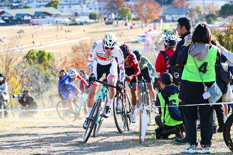 5周目に入ったが、前との差はなかなか縮まらなかった。放送から前が競っていることは知ってい たので、自分も負けじと全開で追ったが、昨年落車した経験もあるので、テクニカルセクションでミ スをせず、最速で走ることは頭に置いていた。最終周回に入る時点でも、先頭との差は20秒のま まだった。