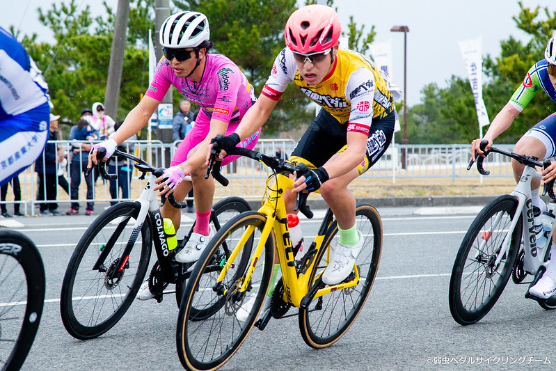 今回のレースは、前日のロードと同じく初のカテゴリーでのレースとなったので、できるだけチームの先輩方から学びとることを意識しながら走りました。後半は、なかなかポジションを上げることができませんでしたが、中盤にがむしゃらに上がろうとしたことと、レース後に英也さんやアマトさんからアドバイスをいただいたことで、なんとか走りを向上させることができそうなので、次戦のクリテリウムでは、もっと積極的な走りができるよう、努力していきたいと思います。